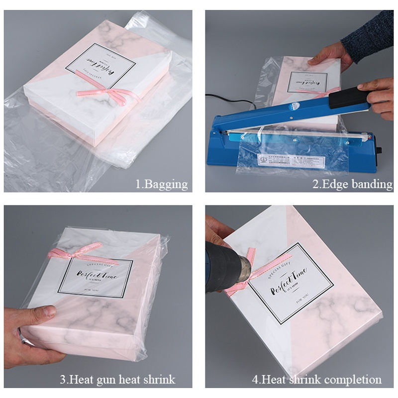 Приложение: Ролка от термосвиваемо фолио, подходяща за опаковане на дрехи, спално бельо, термосвиваеми пъзели, канцеларски материали, книги, рамки за картини, консумативи за правене на сапун, бомби за баня, бутилки с олио, кутии за CD DVD, подаръци, свещи, козметика, обувки, бутилки за вино, малки кошници с подаръци, DIY занаяти и др.